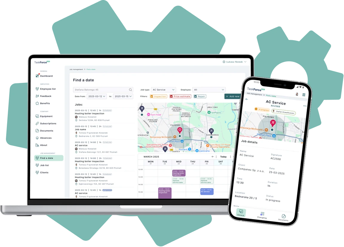TaskForce to aplikacja zaprojektowana specjalnie dla firm, które chcą usprawnić codzienne zarządzanie zleceniami, zespołami i zasobami. Kluczowe funkcjonalności powstały w odpowiedzi na realne wyzwania tej branży - od trudności w koordynacji ekip, przez braki w dokumentacji, po nieefektywne zarządzanie sprzętem. TaskForce wypełnia luki tam, gdzie tradycyjne rozwiązania zawodzą, cyfryzując newralgiczne obszary działalności i eliminując problemy organizacyjne, które często spowalniają pracę i generują niepotrzebne koszty.